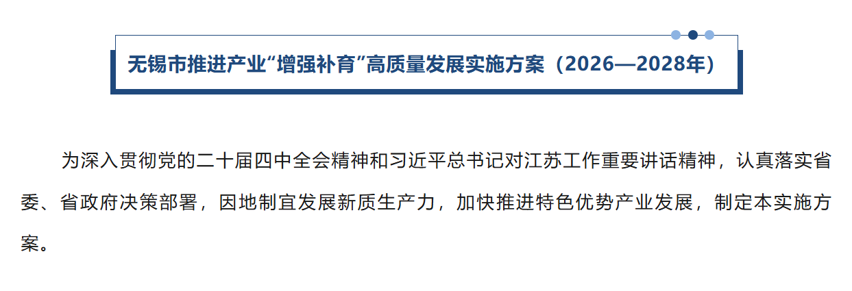 无锡市推进产业“增强补育”高质量发展实施方案(2026—2028年)全文公布