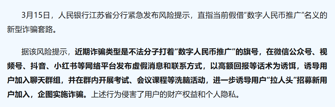 官方提示!关乎数字人民币,警惕这四种新骗局