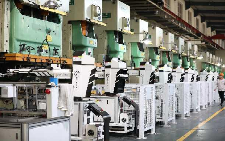 单机冲压是最基础的冲压工艺,很好地弥补了大型冲压的高成本问题,具有模具开发快,维修简单,更改灵活,模具成本低的优点,但有人工成本太高,劳动强度大等问题,为此公司引入机器人,代替人工劳动,实现产品在工序间精准快速传递。