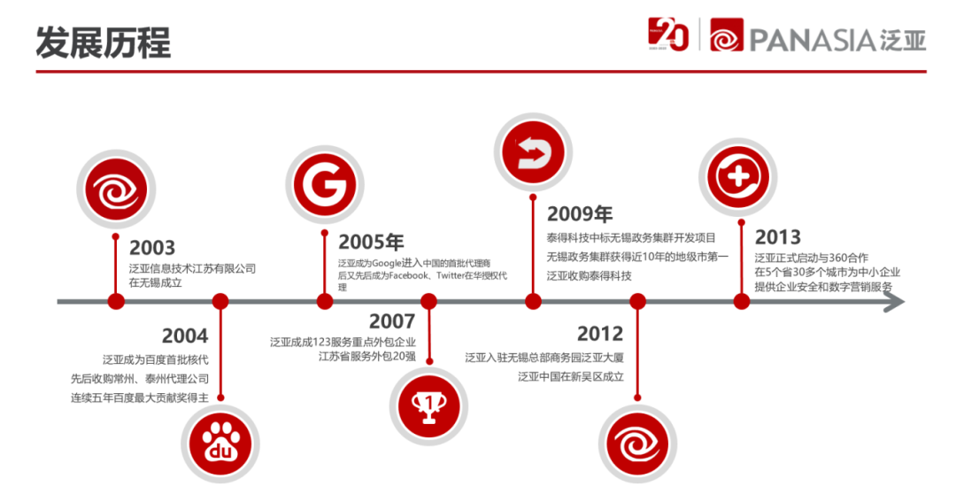 泛亚信息技术江苏有限公司成立于2003年5月,总部设立在被誉为“太湖明珠”的江苏省无锡市。是一家拥有完整的“互联网+”解决方案的供应商和服务商,专注于以国际化的视野引领传统企业模式与营销方式的创新,通过整合各大平台资源,构建一站式企业O2O系统解决方案,致力解决企业全网营销、品牌传播、广告媒体等各项需求,全面实现企业多元化应用,为政企客户提供全网一站式营销服务方案。经过多年深耕,现已成为为客户创造价值、深受用户广泛赞誉、具有卓越影响力的互联网服务机构,领跑在行业的前列,公司的客户遍布全国及东南亚地区,成为值得客户信赖的品牌。