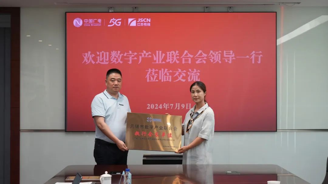 7月9日下午,无锡市数字产业联合会会长温大江一行前往执行会长单位——江苏省广电有线信息网络股份有限公司无锡分公司进行走访座谈。江苏有线无锡分公司党委书记、总经理朱瑞娟接待并主持会议。