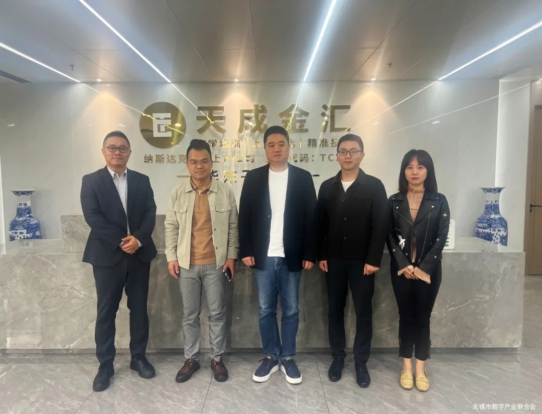 走访交流启新篇,共绘数字产业新蓝图。4月18日,无锡市数字产业联合会会长温大江率领秘书处一行,走访了天成金汇华东子公司,与天成金汇华东总部总经理李将及战略合作中心负责人李琛进行了深入的交流座谈。