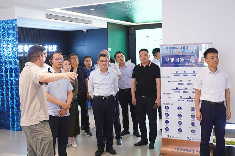 7月3日下午,扬州市政府副秘书长裴东伟、市委组织部副部长郎克光率队赴无锡市惠山区,实地调研空非国际人才社区建设运营工作。无锡市政府办公室副主任马晓东、市委组织部副部长林茂松及市、区相关部门负责人陪同调研。