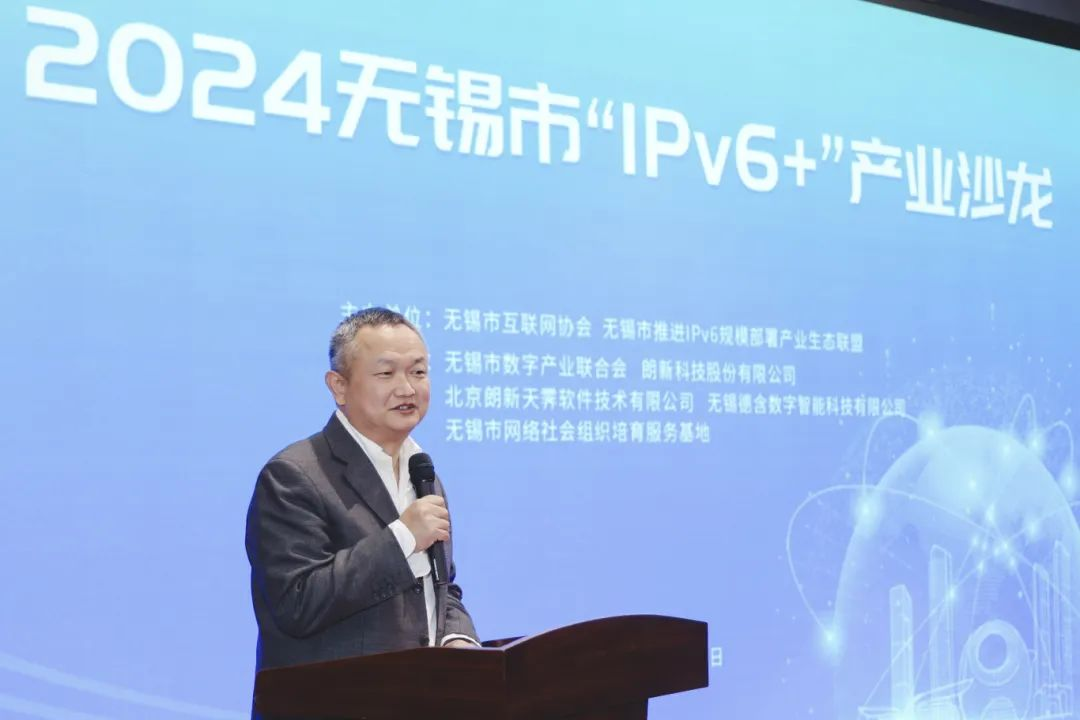 为进一步加快推进IPv6规模部署和应用,推动全国重点城市IPv6流量提升专项行动走深走实,构建完整的IPv6产业生态,提升城市信息化水平,11月29日,2024无锡市“IPv6+”产业沙龙在朗新科技产业园成功举办。主协办单位负责人、相关行业协会成员、市推进IPv6规模部署产业生态联盟企业代表及多家互联网企业高管等50余人参会。