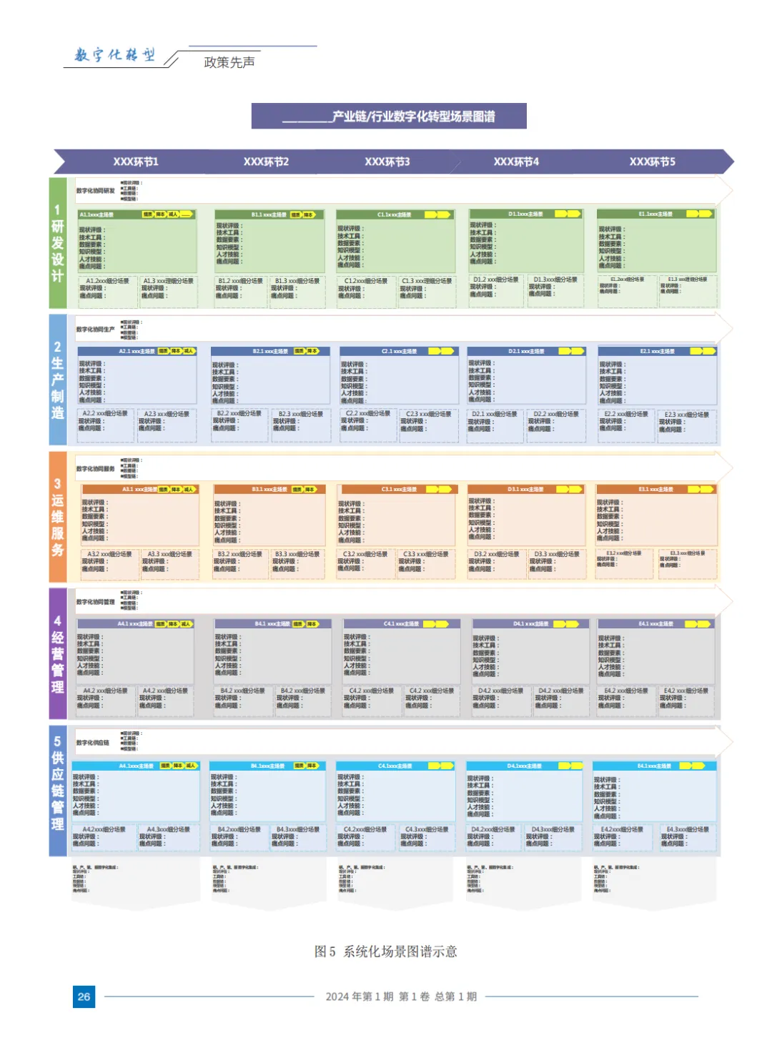 党中央作出一系列重大决策部署,推动高质量发展成为全党全社会的共识和自觉行动,高质量发展成为主旋律。2024 年 5 月国务院常务会议审议通过《制造业数字化转型行动方案》(以下简称《行动方案》),深刻把握发展规律,立足战略全局,着眼长远发展,围绕深化数字化转型等作出系列部署。要抓好《行动方案》落实,细化政策举措,丰富方法工具,“因业施策”提高政策引导准度,解决企业在转型过程中存在的转型痛点找不准、转型投入居高不下、转型成效难以评估等问题。《行动方案》提出,要根据制造业多样化个性化需求,分行业分领域挖掘典型场景,加快核心技术攻关和成果推广应用,着重把典型场景这一制造业全生命周期基本单元,作为制造业数字化转型向纵深推进的重要出发点,深刻反映出我国已发展到深耕细分领域,必须精耕细作、工笔细描。结合产业现实需求,本文提出以场景化、图谱化推进数字化转型的工作考虑,引导各类参与主体明确转型路径,加快转型升级。